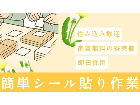抗体検査キットのシール貼り/住み込み歓迎/家賃無料の寮完備/即日採用OK